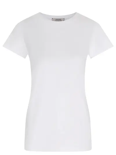 -Белая базовая футболка из хлопка от DOROTHEE SCHUMACHER. -Модель полуприлегающего кроя с короткими рукавами и круглым вырезом горловины будет сочетаться как с джинсами и толстовкой, так и в качестве базы для брючного костюма.