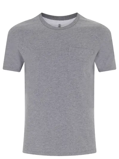 -Серая футболка из хлопка от BRUNELLO CUCINELLI.