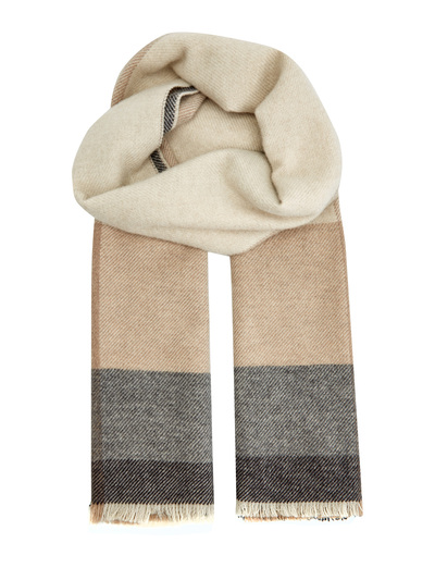 Мягкий шарф в бежево-коричневой гамме от Brunello Cucinelli выполнен из шерстяного и кашемирового твила. Благодаря ценным свойствам натуральных волокон аксессуар обеспечивает комфорт и защиту от низких температур, лаконичный узор в клетку делает модель идеальным дополнением образов в стиле casual. Окантовка из бахромы по узкому краю дополняет аксессуар. Сделано в Италии.