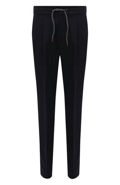 Темно-синие зауженные брюки с широким эластичным поясом-кулиской, четырьмя врезными карманами и защипами на бедрах сшиты из легкой мягкой шерсти. Премиальная ткань создает комфортный для тела микроклимат, а четкие стрелки визуально вытягивают силуэт. Наши стилисты предлагают создать образ с бордовым худи и черными бомбером и кедами.