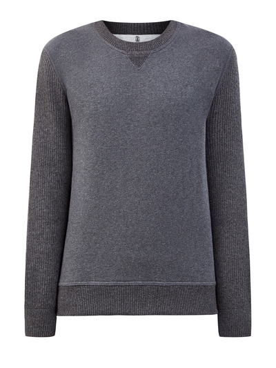 Brunello Cucinelli Комбинированный свитшот из хлопка с отделкой английской вязки 237450 (серый, lpn23378970)