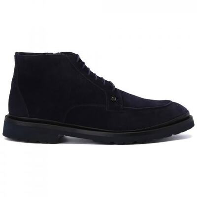 Ботинки из натуральной замши в тёмно-синем цвете от Aldo Brue. Ботинки в стиле casual подойдут как к брюкам, так и к джинсам. Ботинки выполнены из мягкой замши, на практичной резиновой подошве. Дизайн пары завершает шнуровка в цвет. Сбоку расположена застёжка на молнию. Подкладка и стелька выполнены из натуральной кожи.