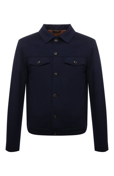 Обычно повседневные куртки с отложным воротником и накладными карманами шьют из денима, но для создания этой темно-синей модели выбрали более мягкую шерсть. Она защищает от ветра и влаги и хорошо удерживает тепло, поддерживая комфортный микроклимат и адаптируя изделие для прогулок в капризную погоду межсезонья.