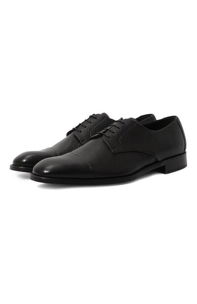 Для пошива темно-коричневых дерби с отрезным миндалевидным мысом мастера марки, основанной братьями Канали, использовали зернистую оленью кожу. Ее бережно выделали так, чтобы усилить природную пластичность и мягкость, оставив при этом прочной. Готовую пару отполировали вручную, добившись деликатного блеска, подчеркивающего фактуру материала.