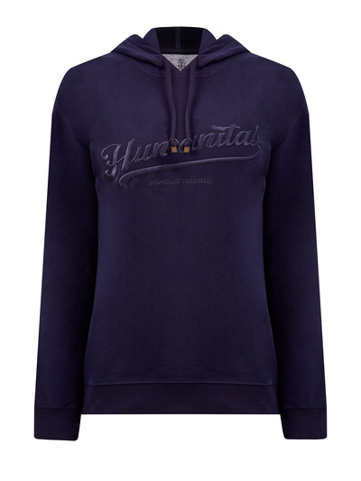 Мужское худи в оттенке индиго от Brunello Cucinelli создано из мягкого хлопкового футера — дышащая и гигроскопичная ткань с полностью натуральным составом идеально подходит для путешествий и активного отдыха. Модель с капюшоном на кулиске характеризуется сезонной вышивкой латинского слова Humanitas, напоминающего гуманистические ценности, лежащие в основе деятельности Модного Дома. Сделано в Италии.