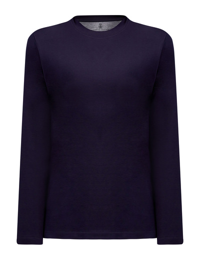 Минималистичный мужской лонгслив в оттенке ночного неба от Brunello Cucinelli. Базовая модель создана из натурального хлопкового джерси — однородные волокна образуют гладкую фактуру и благородный блеск. Дышащая и гигроскопичная ткань обеспечивает максимальный комфорт в движении. Детали: круглый вырез горловины, простроченные швы, длинные рукава Сделано в Италии.