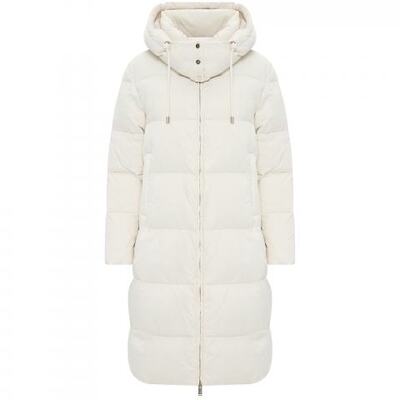 Пальто от Principe di Bologna. Пальто белого цвета согреет в холодный день и добавит разнообразия в гардероб. Верх и подклад выполнены из акрила, наполнитель — гусиный пух. Пальто застёгивается на молнию. Большой капюшон дополнен шнурком-кулиской, а воротник - кнопками. По бокам расположены карманы.