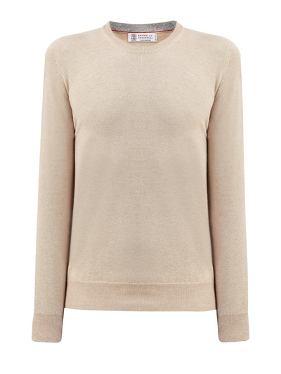 Лаконичный мужской джемпер от Brunello Cucinelli выполнен в универсальной бежевой гамме. Полностью натуральный материал на основе ценных волокон кашемира обладает свойством поддерживать температуру тела на оптимальном уровне. Эластичные элементы английской вязки обеспечивают посадку точно по фигуре, контрастная окантовка манжет вносит в образ неформальный штрих. Сделано в Италии.