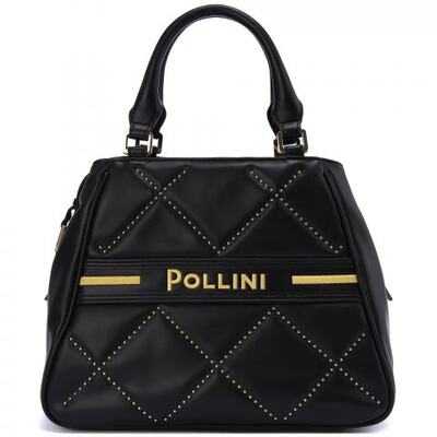 Чёрная сумка из искусственной кожи от Pollini. Стильная сумка с современным и запоминающимся дизайном. Удобные ручки из кожи, съёмный ремень на плечо на карабинах, фирменный логотип бренда спереди, застёжка на молнию и большое внутреннее отделение с карманом на молнии.