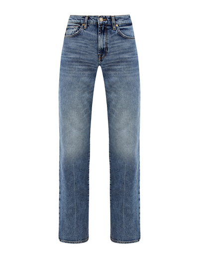 Стильные женские джинсы Tess от 7 For All Mankind выполнены из плотного денима, окрашивание в готовом виде придает материалу неоднородный выбеленный эффект. Модель свободного прямого кроя на высокой посадке идеально подойдет для создания повседневных расслабленных образов, контрастная прострочка завершает дизайн. Детали: пять карманов, брендированная фурнитура, нашивка на спинке.