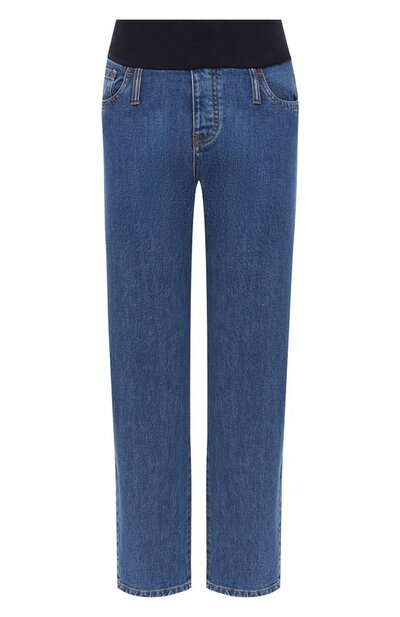 Для пошива джинсов выбрали хлопковый деним стрейч. Модель с пятью карманами дополнили широким поясом из трикотажа, который комфортно облегает живот на любом сроке беременности.