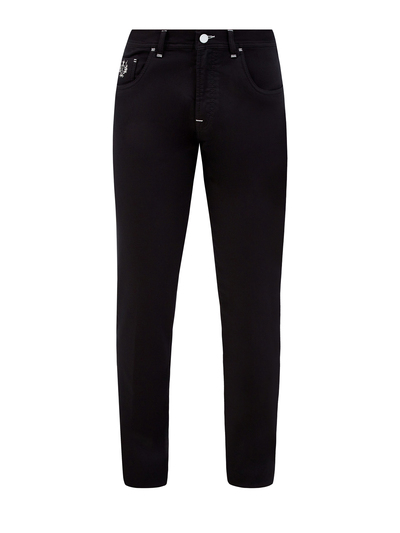 Джинсы зауженного кроя Costantino от Scissor Scriptor выполнены мастерами бренда вручную. Японский деним из мягкого лиоцелла с добавлением эластичных волокон и тонкой флисовой подкладкой обеспечивает максимальный комфорт в движении. Контрастные вышитые детали и матовая фурнитура перекликаются с цветовым исполнением нашивки из замши на поясе. Детали: пять карманов, застежка на пуговицу и молнию, вышитый логотип бренда. Сделано в Италии.