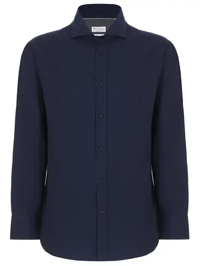 -Темно-синяя рубашка из смесового хлопка от BRUNELLO CUCINELLI.