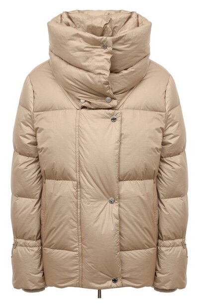 Пуховик Madeira с высоким двойным воротником и парой карманов сшили из влагоотталкивающего жатого нейлона. Куртку с шелковистым подкладом утеплили гусиными пухом и пером, которые обеспечивают комфорт при температуре от -5 до +12 градусов. По бокам у модели предусмотрели молнии, а рукава с кулисками дополнили манжетами из шерстяного трикотажа.