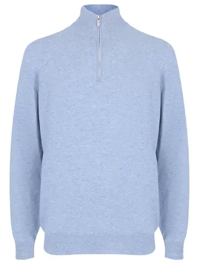 -Голубой вязаный джемпер из ультрамягкого кашемира от BRUNELLO CUCINELLI.