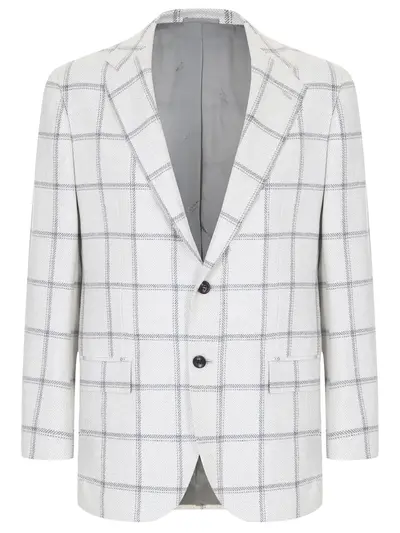 -Светло-серый в клетку пиджак из кашемира от KITON.