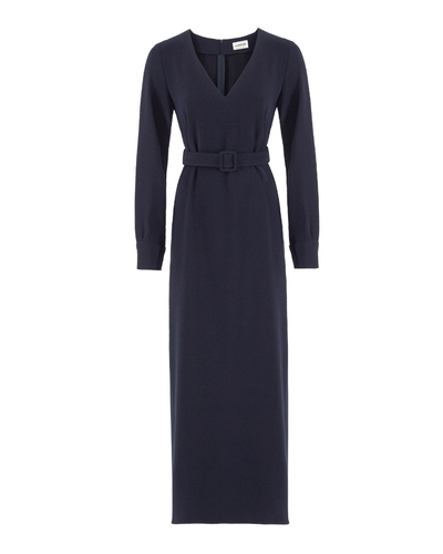 Платье макси P.A.R.O.S.H из крепа. Модель с длинными рукавами с разрезами и застежкой на спине на потайную молнию дополнено поясом из основного материала.