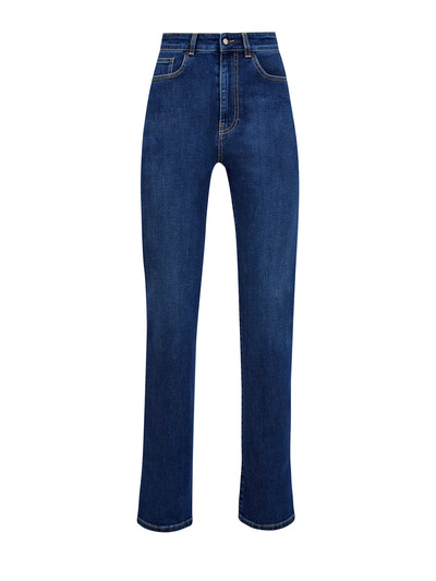 Стильные женские джинсы от Fabiana Filippi выполнены из плотного хлопкового денима, эластичные волокна в составе препятствуют износу. Прямой крой с разрезами и высокая линия талии визуально моделируют силуэт, классический синий оттенок делает модель универсальной для составления расслабленных повседневных образов. Контрастная прострочка швов нитью лимонного оттенка и нашивка на поясе завершают дизайн. Сделано в Италии.