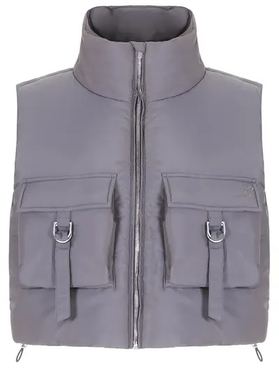 -Серый утепленный жилет из плащевки купажированного состава от BLUMARINE.