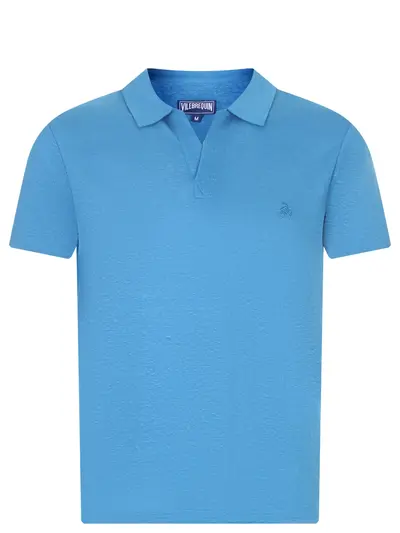 -Синее поло из легкого дышащего льна от VILEBREQUIN.