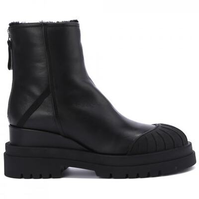 Высокие ботинки из чёрной кожи от Premiata. Ботинки в базовом чёрном цвете подойдут к любому образу и стилю. Верх выполнен из натуральной гладкой кожи чёрного цвета. Носок модели усилен резиновой вставкой. Сзади расположена удобная застёжка на молнию. Подошва выполнена из резины и дополнена высоким протектором специально для холодного времени года. Внутри тёплые подкладка и стелька из натурального меха.