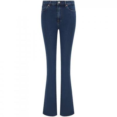 Синие джинсы от 3x1. Расклешённые джинсы Farrah облегают бедра, а затем расширяется от колен. Модель со средней посадкой выполнена из плотной джинсовой ткани.