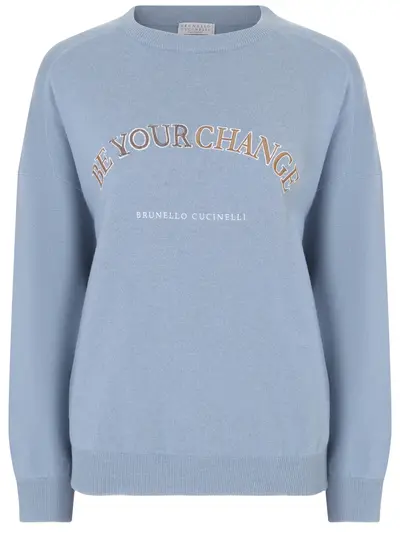 -Голубой джемпер из тонкой мягкой шерсти от BRUNELLO CUCINELLI.