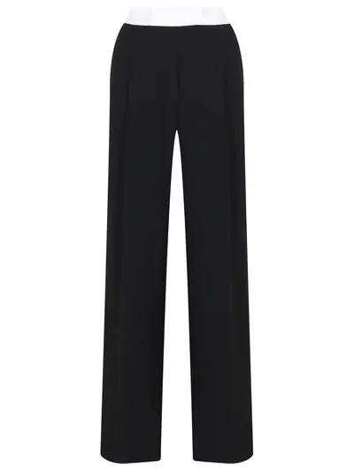 -Черные брюки из легкого крепа от ROZIECORSETS. -Модель прямого кроя с защипами, графичными стрелками и белым сатиновым поясом гармонично дополнит как офисные классические образы, так и повседневные с трикотажем.