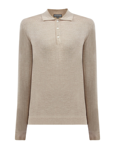 Мужской джемпер от Canali выполнен в лаконичной бежевой гамме. Для создания модели была выбрана тонкая шерстяная пряжа чулочной вязки — идеальное решение для холодного сезона. Классический крой с отложным воротом и застежкой на пуговицы из перламутра дополнен отделкой кромок в английскую резинку. Сделано в Италии.