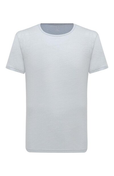 Для пошива голубой футболки с короткими рукавами мастера марки использовали тонкий льняной трикотаж, который получился мягче и легче обычного за счет особой обработки прочных нитей. Материал пропускает воздух и быстро впитывает излишки влаги, а изделие из него способно охлаждать поверхность кожи на несколько градусов.