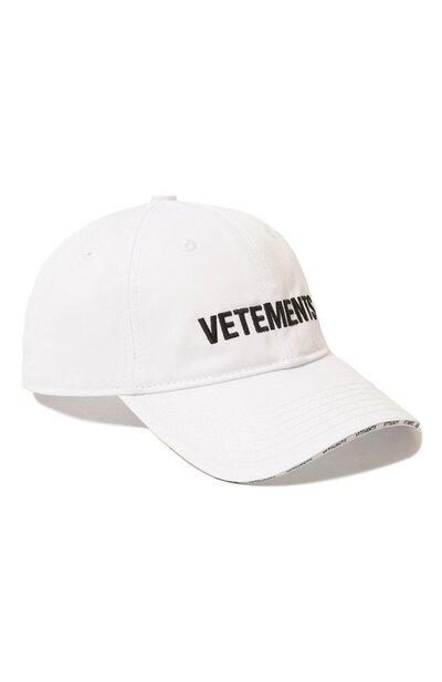 Белоснежную бейсболку с регулируемым ремешком сзади и люверсами на тулье сшили из прочного хлопкового габардина, который не деформируется со временем. Принадлежность изделия марке подчеркнули крупной контрастной вышивкой в виде логотипа спереди и брендированным кантом вдоль края широкого козырька.