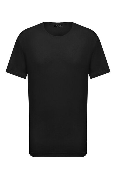 Очищенную от любого декора черную футболку мастера марки сшили из тонкого хлопкового джерси, которое быстро отводит влагу. Дышащий материал с характерным переплетением длинных тонких волокон немного тянется, поэтому модель комфортно облегает фигуру и не сковывает движения.