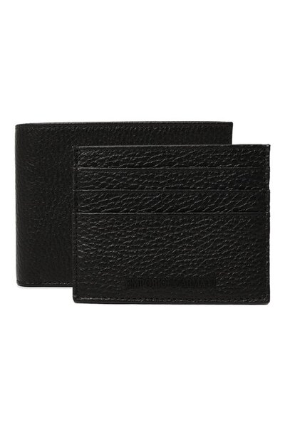 Для изготовления черного портмоне мастера марки использовали матовую крупнозернистую кожу, устойчивую к заломам и царапинам. Внутри предусмотрели четыре слота для банковских карт, отделения для купюр и карман для монет, закрывающийся клапаном. В комплекте – картхолдер с шестью слотами и открытым центральным отсеком для чеков. Оба изделия украсили рельефным логотипом в тон.