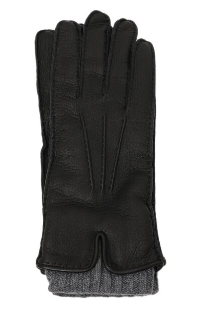Перчатки универсального черного цвета мастера марки сшили вручную из мягкой зернистой кожи, устойчивой к заломам и царапинам. Модель дополнили внутренней отделкой из нежного кашемира. Материал из тонкого пуха горных монгольских коз не колется и особенно хорошо сохраняет тепло, поэтому в изделии будет комфортно в холодную погоду.