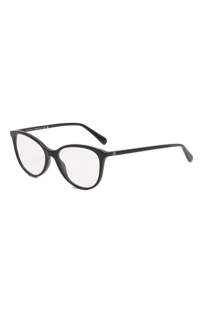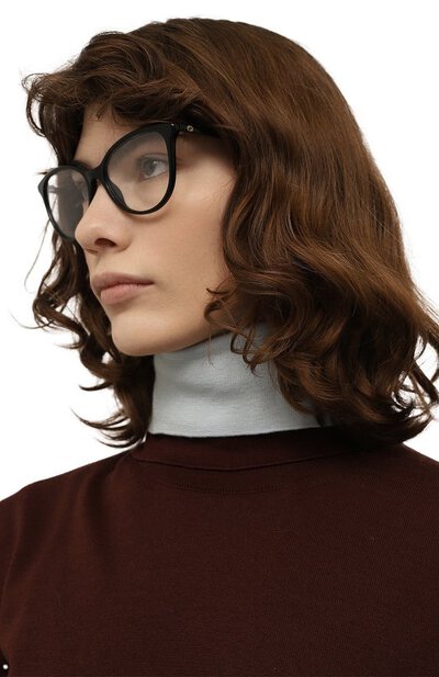 Лаконичный дизайн узкой черной оправы подчеркнули, разместив у основания тонких дужек миниатюрную золотистую монограмму GG. Для изготовления аксессуара мастера марки использовали легкий ацетат, который тщательно отшлифовали до получения деликатного блеска.