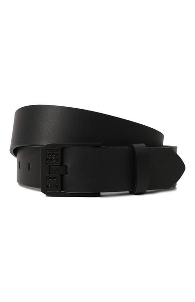 Черный ремень мастера марки выполнили из плотной гладкой кожи, которую бережно обработали до получения шелковистого блеска. Модель застегивается прямоугольной пряжкой в тон, украшенной рельефным логотипом бренда.