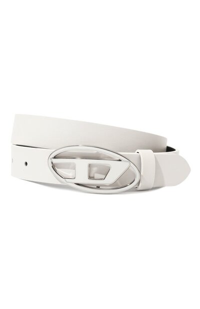 Ремень со шлевкой мастера бренда изготовили из мягкой, но прочной кожи чистого белого цвета. В тон материалу подобрали эмаль, которой подчеркнули объемную эмблему The Big D на крупной овальной пряжке из отполированного металла оттенка серебра.