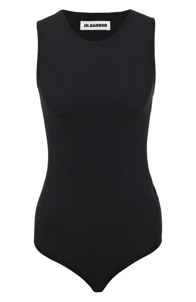 Для изготовления черного боди с круглым вырезом мастера марки, основанной Джил Сандер, использовали мягкий эластичный трикотаж. Изделие из такого материала плотно, но при этом комфортно облегает фигуру, подчеркивая силуэт. Мы предлагаем носить модель с джинсами и жакетом, а завершить образ помогут полусапоги и сумка.