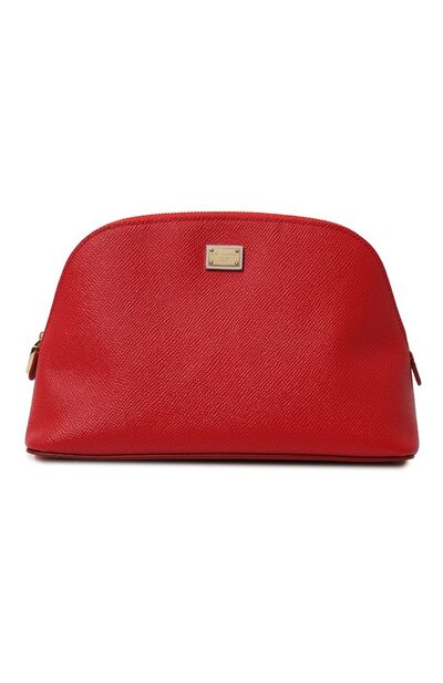 Мастера марки сшили красную косметичку из плотной кожи с фирменным тиснением Dauphine. Такая фактура выполняет не только декоративную функцию, но и делает материал более прочным. Спереди аксессуар украсили знаковой для бренда пластиной с логотипом.