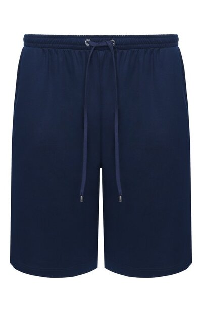 В темно-синих шортах будет удобно в течение всего дня. За комфорт отвечает свободный крой, широкий пояс-кулиска и материал. Для создания модели мастера марки использовали мягкое эластичное джерси из смеси хлопка и микромодала. Шелковистый текстиль не мнется, а вещь из него почти не ощущается на коже. В роли декора выступает накладной карман, который выполнили из плотной ткани с геометрическим узором.
