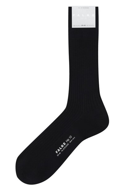 Высокие носки универсального темно-синего цвета изготовили из мягкого мерсеризованного хлопка фильдекос. Его волокна туго скрутили и обработали пламенем, чтобы удалить пух, поэтому изделие обрело шелковистую фактуру. Благодаря такому приятному на ощупь материалу и плоскому кеттельному шву модель с широкой эластичной манжетой облегает ногу максимально комфортно.