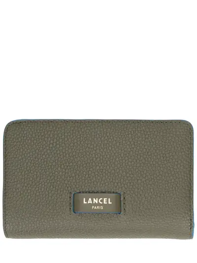 -Зеленый кошелек из зернистой кожи от LANCEL. -Модель прямоугольной формы с отделением для монет на молнии, десятью слотами для визиток и карт, отделением для купюр, застежкой на кнопку, тисненым логотипом спереди.
