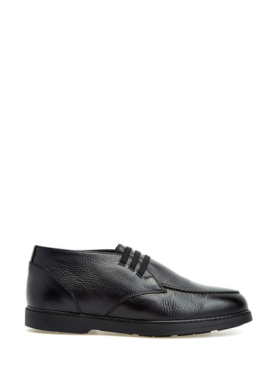 Мужские ботинки от Doucal’s выполнены из крупнозернистой телячьей кожи. Модель в базовом черном цвете сочетает фактурные швы в расслабленном стиле с эластичными лентами вместо шнуровки. Внутренняя подкладка из теплого меха создает надежную защиту даже в условиях низких температур, литая подошва препятствует скольжению. Сделано в Италии.
