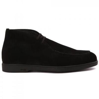 Чёрные полуботинки дополнят зимний гардероб в классическом и деловом стиле. Модель выполнена из замши, на резиновой подошве. Внутри подклад и стелька из натурального меха. Шнуровка обеспечит комфортное обувание. Полуботинки лучше всего будут сочетаться с чёрными и темно-серыми брюками.