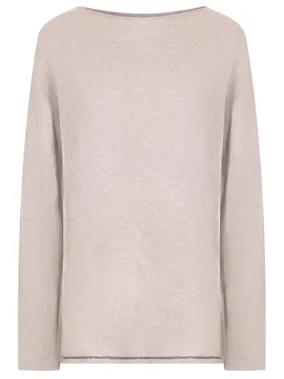 -Светло-коричневый джемпер из тонкой мягкой шерсти от LE TRICOT PERUGIA. -Модель свободного силуэта со спущенной линией плеча, длинными рукавами, широким вырезом горловины-лодочка, отделкой низа изделия цепочками Мониль.
