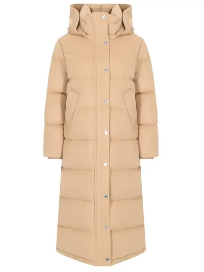 -Бежевый удлиненный стеганый пуховик из кашемира от ADDICTED.