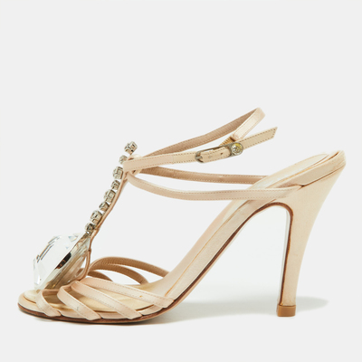 Chanel Beige Satin Crystal Embellished Slingback Sandals Size 39.5 865070 (бежевый, lpn24004601)