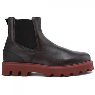 Ботинки из кожи в тёмно-коричневом цвете от Baldinini. Идеальная модель для осенних образов в городском и деловом стиле. Ботинки выполнены из гладкой кожи с эластичными текстильными вставками по бокам. Толстая резиновая подошва контрастного оттенка придает характер, а утепленные мехом подкладка и стелька обеспечивают тепло и комфорт.