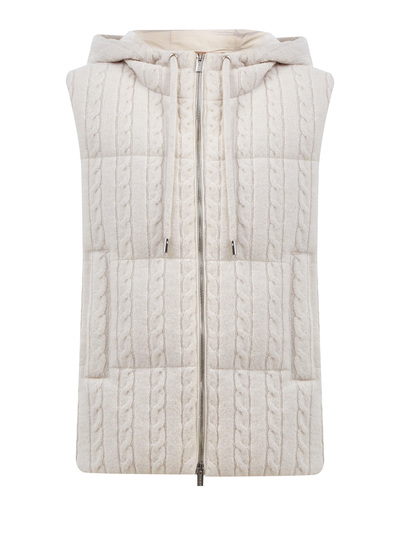 Peserico Пуховый жилет из шерсти и кашемира с вязаным узором 240185 (бежевый, lpn24066383)