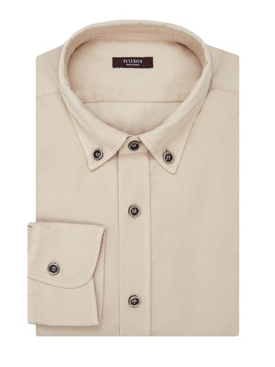 Peserico Рубашка из тонкого хлопкового вельвета с воротником button-down 240288 (бежевый, lpn24101680)